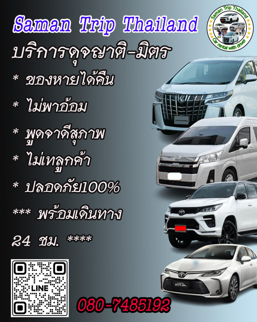 - ไม่อยากนั่งรถสาธารณะหรือรถทัวร์ไม่สะดวกใช้รถส่วนตัวเดินทาง เรามีรถเหมาพร้อมคนขับ